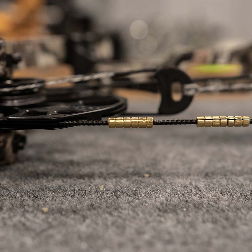 The ACU Stax Machined Brass Bowstring Weights (10-Pack) are precision-crafted brass nock set weights designed to enhance bowstring stability and performance. Machined from solid brass on Swiss-turn machines, these weights provide consistent and reliable tuning for optimal shooting results. Available in stacks of 2, 3, 4, or 5, each chamber corresponds to the weight of a standard red nock set, making them a trusted choice among top bowstring manufacturers. Designed to be crimped onto the bowstring, ACU Stax offer an effective way to fine-tune arrow flight and enhance consistency in both competition and hunting setups.