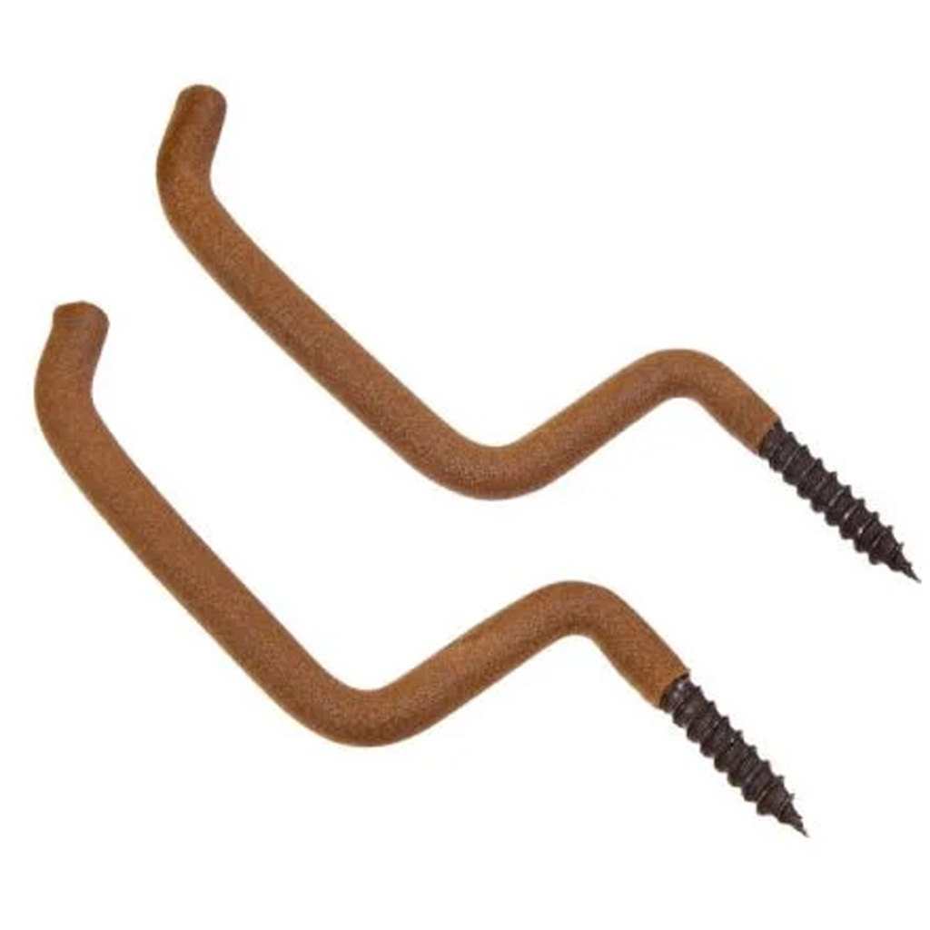 Pull up rope constructed of 20’ of camo cord with attached spring clips. Includes 2 soft expanded vinyl coated steel screw in hooks.