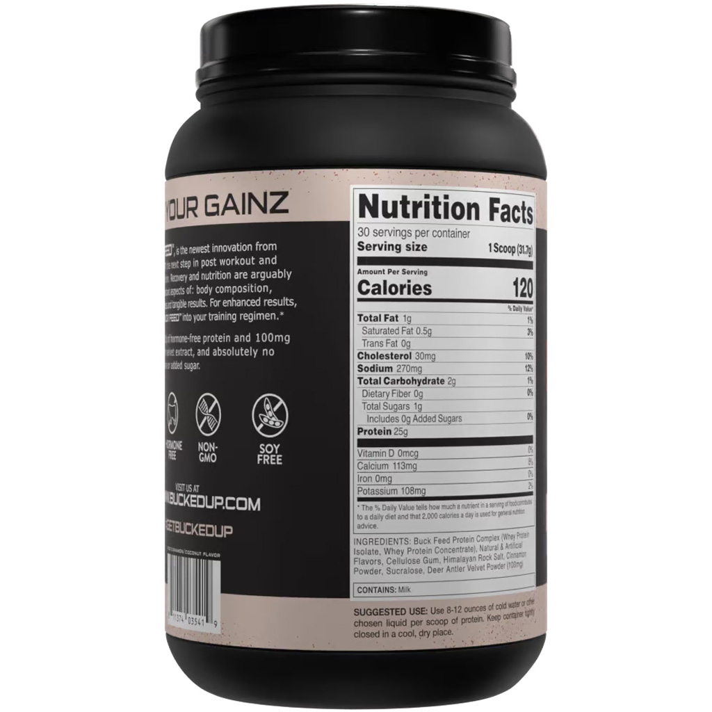 Bucked Up Buck Feed Protein is a high-quality, low-carb whey protein supplement formulated to support muscle growth, recovery, and fat loss. Each serving delivers 25 grams of hormone-free whey protein—primarily from fast-absorbing whey isolate—combined with Deer Antler Velvet Powder for added performance benefits. Designed to be easily mixed and digested, Buck Feed features no hormones, soy, or excess carbs, making it a clean and effective choice for athletes and everyday fitness enthusiasts alike. With a lineup of mouth-watering flavors, this protein offers both exceptional taste and nutritional performance at an accessible price point.