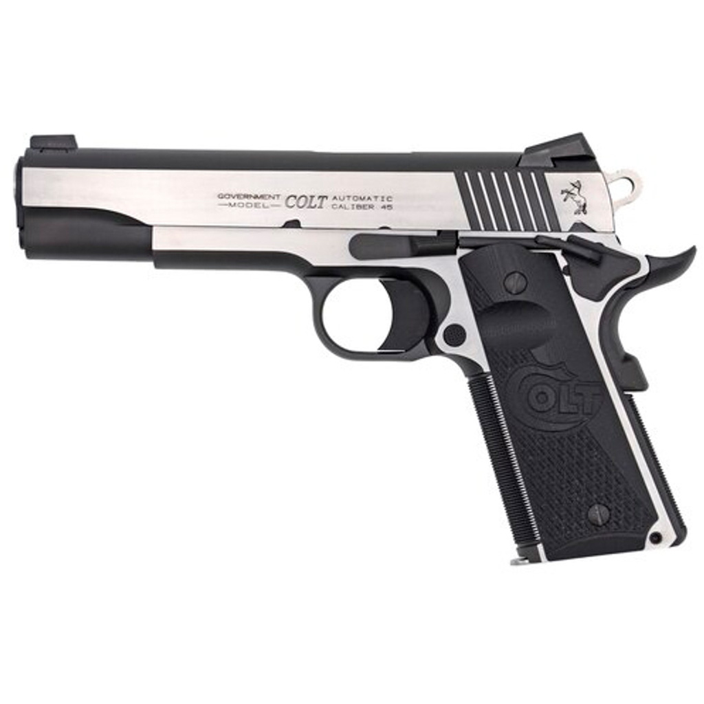 The Colt 1911 Combat Elite Government Pistol in .45 ACP is built for precision and performance, featuring a 5-inch barrel and a two-tone Elite stainless steel and black finish for a modern tactical appearance. Its Novak night sights provide exceptional low-light accuracy, while the dual-spring recoil system enhances reliability and reduces felt recoil. Designed for serious shooters, this single-action 1911 offers a robust steel frame and G10 half-checkered black grips with scallop detailing for superior handling and control. With an 8+1 capacity, this pistol is an outstanding choice for both defensive and competitive shooting.