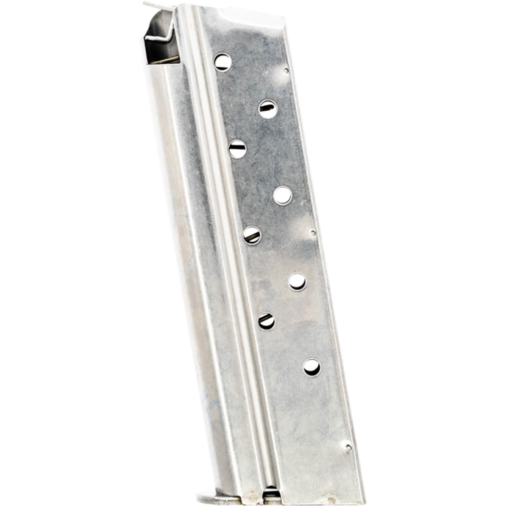 The Colt 1911 Government/Commander Magazine in 9mm is a high-quality factory magazine built for reliable function in Colt 1911-style pistols. Designed to fit Government and Commander models, this magazine holds 9 rounds of 9mm and is constructed from durable stainless steel for corrosion resistance and longevity. Its precise construction ensures smooth feeding and dependable performance in any setting.