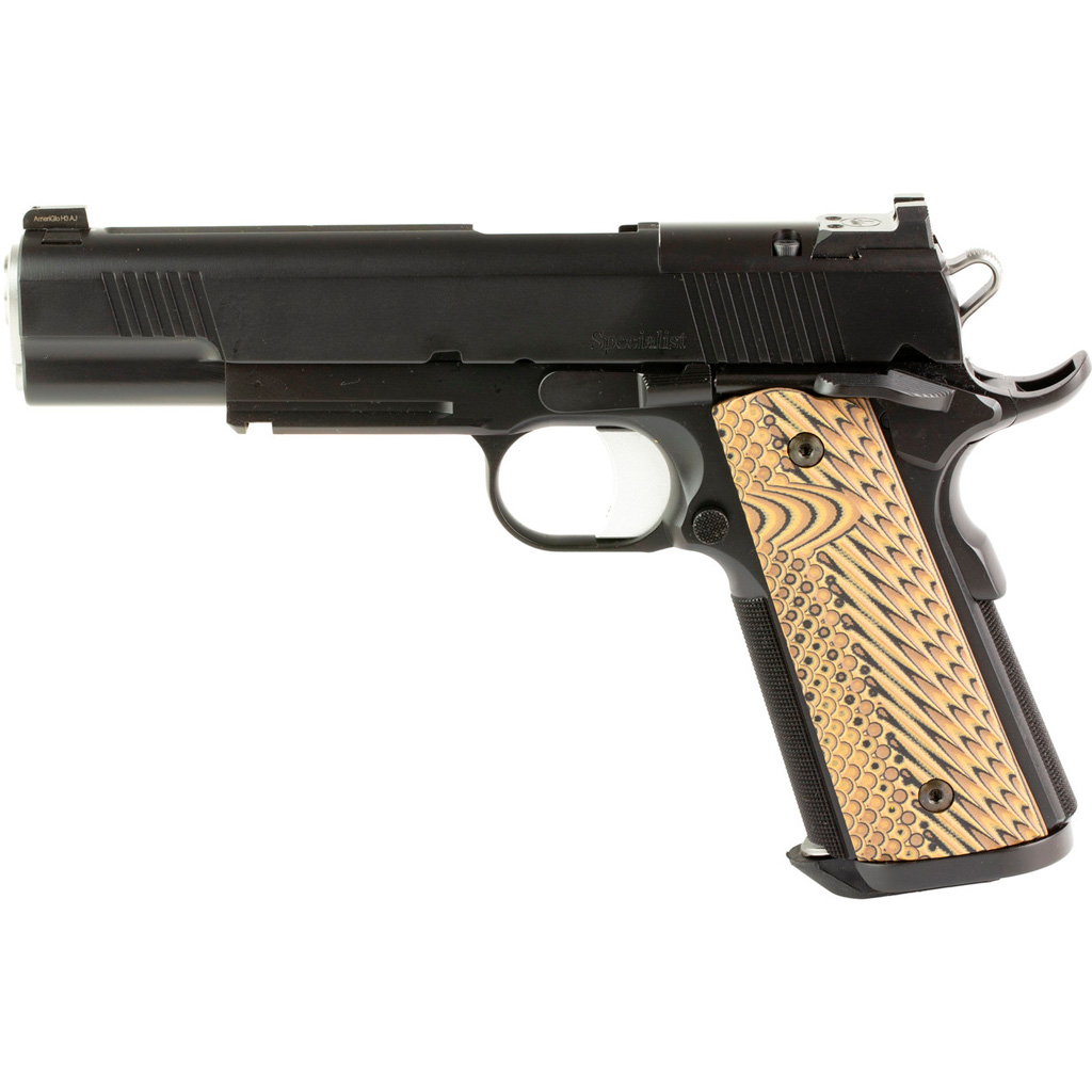 The Dan Wesson Specialist Optic Ready Pistol is a premium 1911-style handgun tailored for personal defense and professional use. Chambered in powerful 10mm, this firearm delivers superior performance with a match-grade barrel and precision hand-fitted slide, frame, and barrel for exceptional accuracy and reliability. Featuring a Black Duty finish and durable VZ Operator II G10 grips, the Specialist is built for demanding conditions. Its optics-ready slide supports red dot sights, while Novak-style fixed night sights with tritium self-illuminated vials enhance low-light aiming. The pistol's checkered mainspring housing, ambidextrous manual safety, and integrated 1913 Picatinny rail offer versatility and user comfort. With an extended magazine well for fast reloads, tactical hammer, and front serrations, the Specialist is both practical and tactical, embodying Dan Wesson’s renowned craftsmanship.