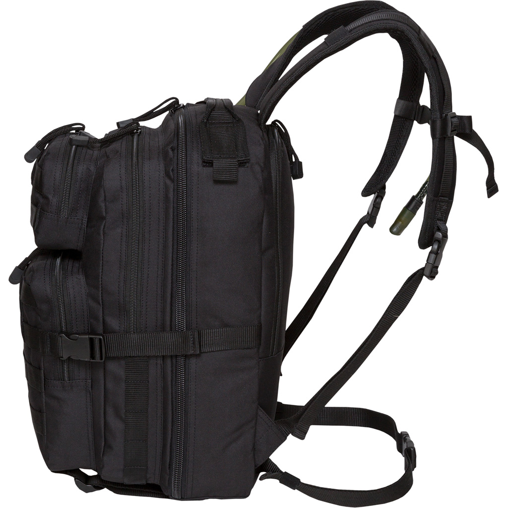 Featuring a 2-liter hydration reservoir and dual hose ports, it keeps you fueled and hydrated on the move. Its 22-liter capacity includes a clamshell-opening main compartment, a secondary compartment with internal pockets, and two front cargo pockets with MOLLE webbing for accessory attachments. Built from durable polyester and equipped with adjustable straps, a sternum slider, and compression points, this hydration pack is engineered for balanced, all-day carry in demanding conditions.