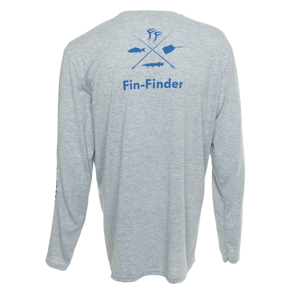Long-sleeved shirt sporting Fin-Finder branding on front, back and sleeve.