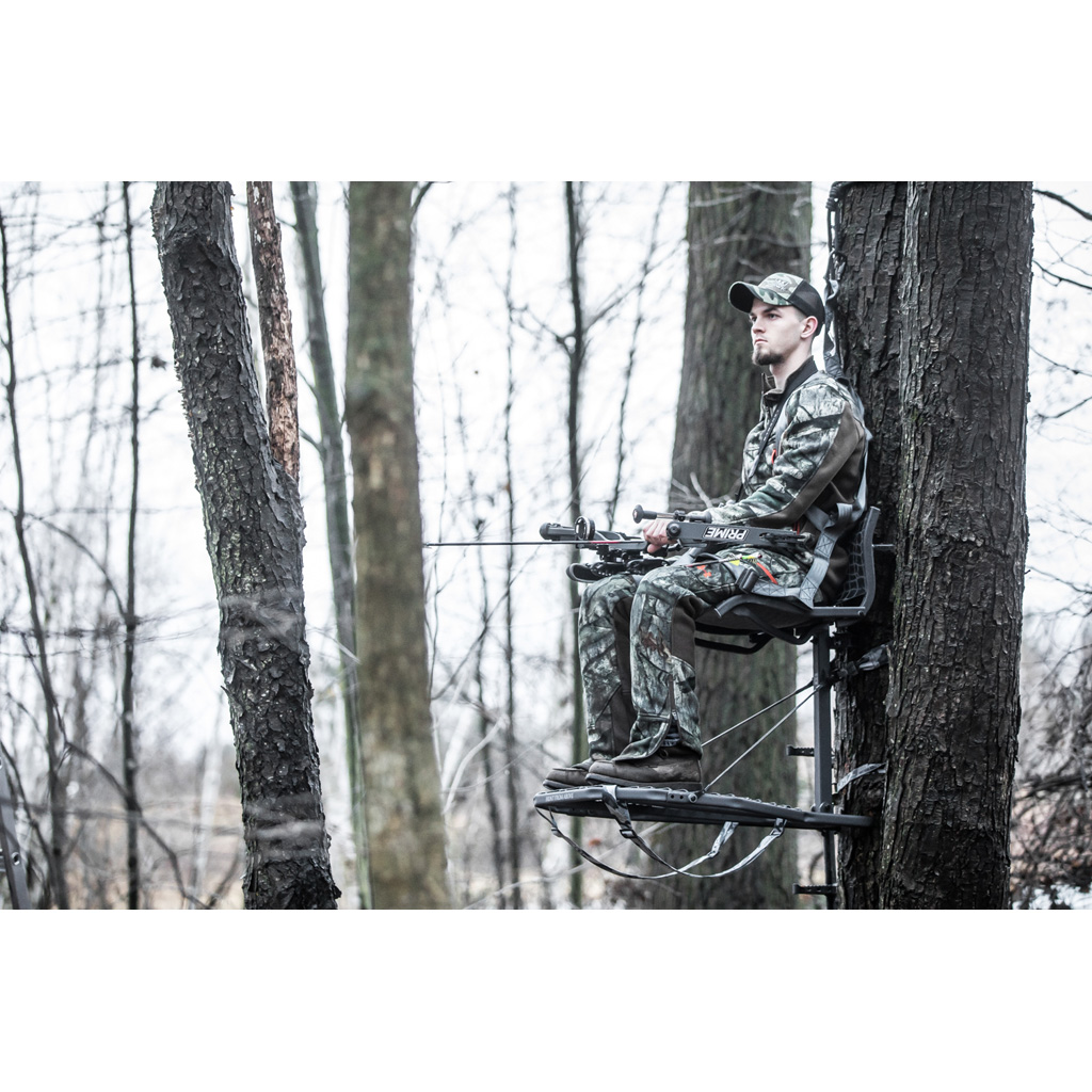 The Cruzr is constructed of steel and features a MeshComfort Lumbar seat that conforms to your body and offers all day comfort and spinal support. A 24" x30" platform that's welded at all contact points to create a rock solid, one piece design. Silent, over molded attachment hooks and premium Teflon washers ensure no-noise, no-squeak performance while the heavy duty platform cables and Tree digger teeth provide an added level of security and stability. Optional use with Cruzr tree hanging bracket offers quick, safe install and removal. Weight Capacity: 300 lbs., Stand Weight: 22 lbs.