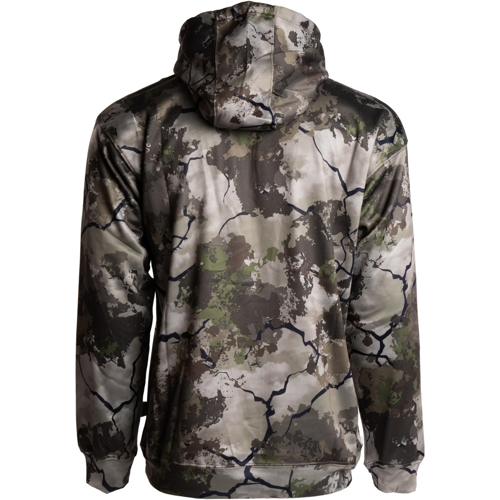 The Hunter Series Hoodie is constructed from performance poly fleece material which is not only soft and quiet but also boasts quick-dry capabilities for superior performance in the field. The design features a practical kangaroo pocket and stylish camo cuffs on the sleeve and waist, making it as fashionable as it is functional. The hoodie's fabric ensures durability and a lightweight feel, making it an excellent choice for any hunting excursion or outdoor activity.