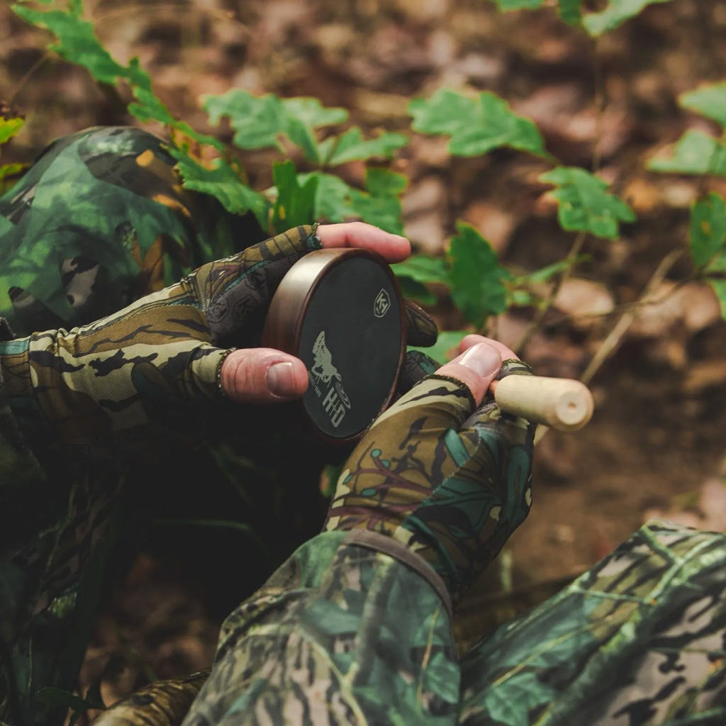 The Knight and Hale HD Slate Surface Pot Call is a reliable, handcrafted turkey call designed to produce a wide range of lifelike vocalizations. Featuring a textured slate surface and a walnut pot, this call is paired with a hand-matched hickory striker to deliver soft purrs and clucks for close-range encounters, as well as loud, resonant yelps for long-distance communication. Easy to condition with the included scouring pad, this pot call is ideal for hunters who demand precise sound control and natural tones. Handmade in the USA, it’s built for consistent performance in the field.