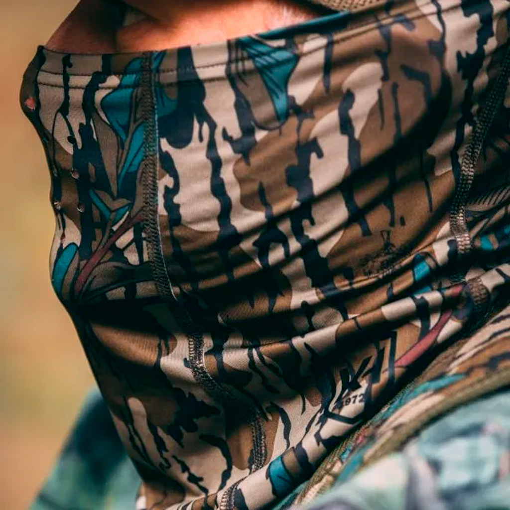 The Knight and Hale Run N' Gun Face Mask delivers lightweight, breathable concealment for all-season hunting. Made from a 4-way stretch polyester-spandex blend, it offers a snug yet comfortable fit with a contoured design around the eyes for natural visibility. Strategically placed mouth holes improve breathability and reduce moisture build-up, making it ideal for long sits or active hunts. With quick-adjust functionality and a camo finish that blends into any environment, this mask is built for versatility and stealth.