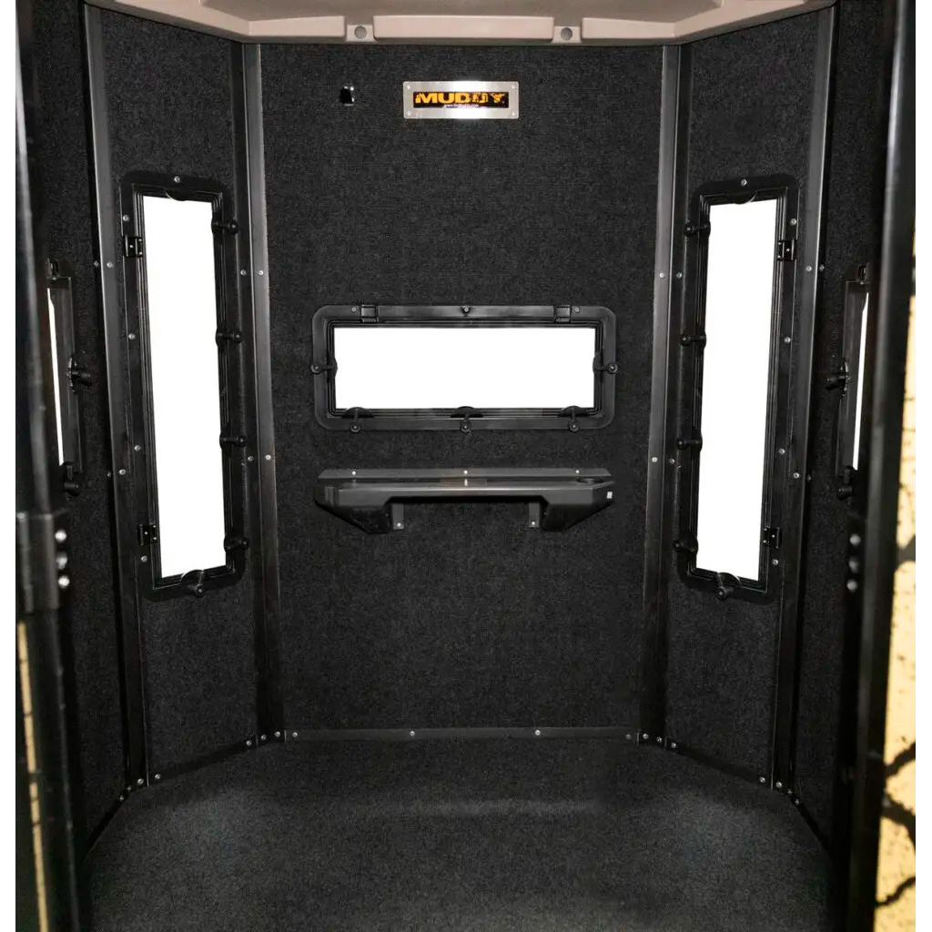 The Muddy Bull ST Box Blind is a premium, all-season hunting blind built for maximum concealment, comfort, and durability. Constructed in the USA with an all-steel wall design, it features a cracked mud exterior pattern to break up its outline for superior camouflage. Therma-Tek wall panel technology provides thermal, scent, and noise control, ensuring an undetectable and comfortable hunting experience. The spacious 6' x 6' x 6.5' interior includes dark carpeted walls and a rugged, treated plywood floor with carpeting to reduce sound. The weatherproof, roto-molded roof protects against the elements, while four vertical and three horizontal windows with steel friction hinges ensure smooth, secure operation at any angle. A full-size lockable door, built-in shelf with cup holder, and compatibility with Muddy’s Elite Towers make this blind a top choice for serious hunters.