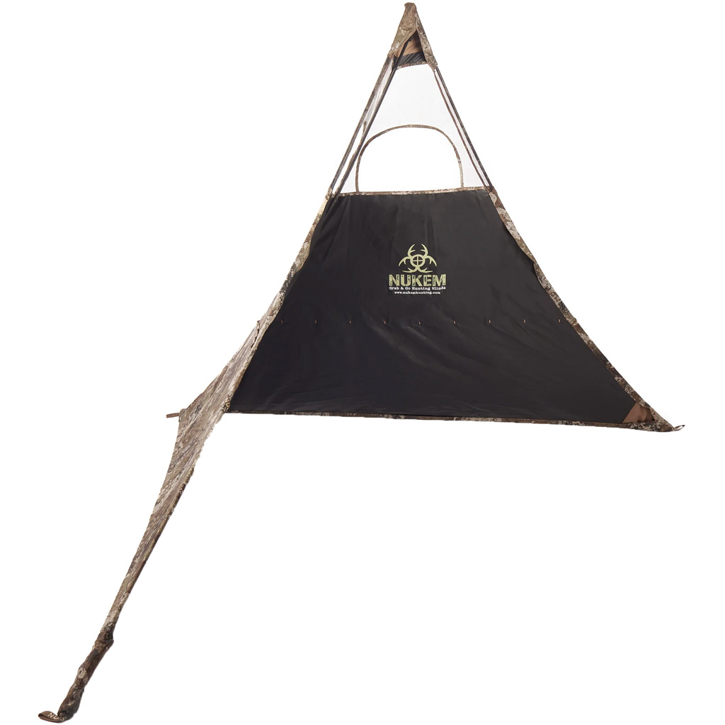 The Nukem Grab & Go Hunting Blind is exceptionally lightweight at only 3 pounds, crafted with durable 150 Denier Nylon. It’s designed for quick setup and takedown, allowing hunters to move stealthily in the woods. With its adjustable height of 45-53 inches and a generous width that extends over 7 feet, it comfortably accommodates one hunter. This stake-free blind can be set up in less than a minute for rapid deployment. For ease of transport, it collapses to 32 inches and includes a carrying case with an adjustable shoulder strap. Whether you're sitting on the ground or in a low-profile chair, the Nukem Grab & Go Hunting Blind ensures you remain concealed and focused on the hunt.