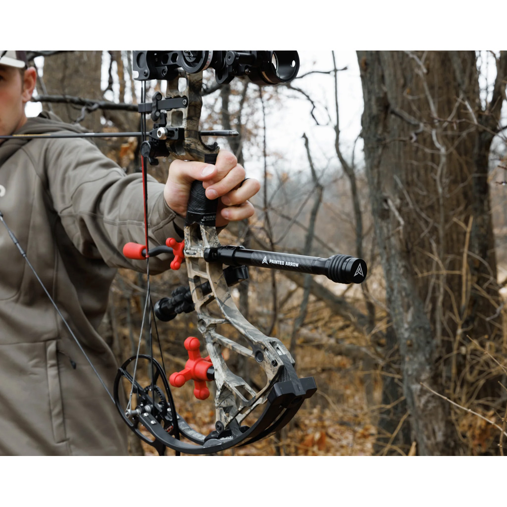 The Painted Arrow Spike Stabilizer is a lightweight and durable accessory designed to enhance your bow's stability and accuracy. With a universal 5/16-24 thread size, it fits virtually any bow, making it versatile and easy to use. Constructed from a matte black carbon fiber weave, this 7-inch stabilizer features a 20mm diameter and includes vibration-dampening rings for a customized setup. Weighing only 10 oz, it combines performance and portability, ensuring a smooth and precise shooting experience.