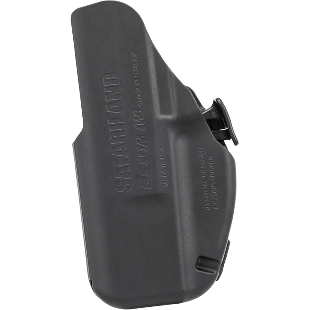 The Safariland 575 IWB Holster GLS Pro-Fit Holster incorporates the unique Grip Lock System for secure firearm retention, which is deactivated by the middle finger for a quick draw. Designed for multiple firearms, this low-cut, compact holster is made from a proprietary nylon blend called SafariSeven, non-abrasive to the gun's finish, and offers high heat and low cold tolerance. It comes with two belt loop options, over-the-belt and under-the-belt for a customized fit, and features a fully adjustable cant for personalized draw angle preference. Additionally, it is designed for deep concealment and is optic-capable, enhancing its versatility for various users and carry styles.