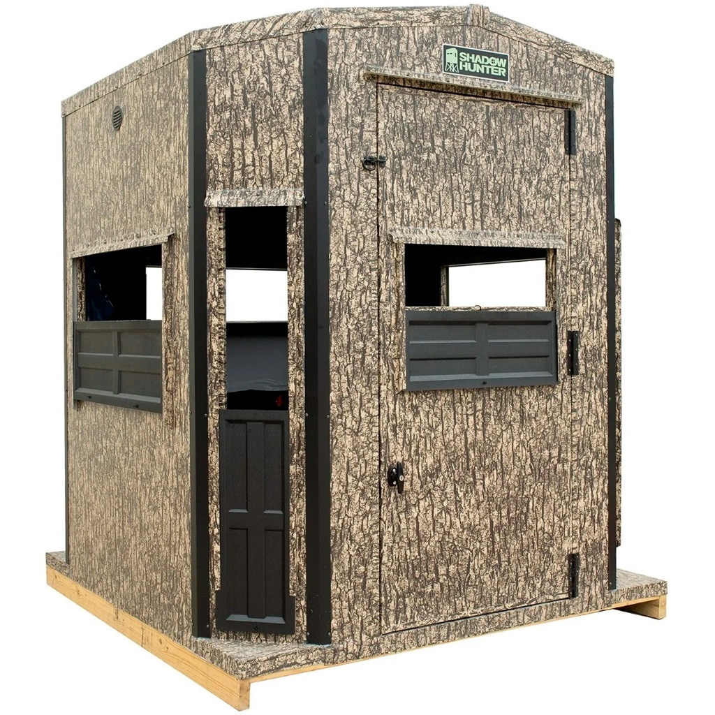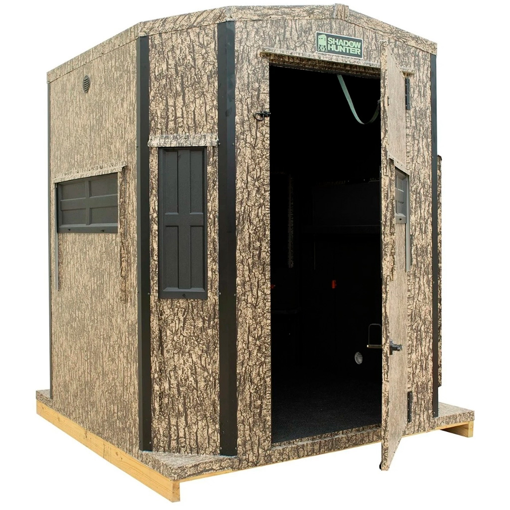 The Shadow Hunter 6 x 6 ft. Octagon Archery Box Blind is purpose-built for bowhunters who demand complete coverage, quiet concealment, and rugged all-season protection. Featuring a 20-gauge rustproof aluminum exterior and ShadowTech insulated walls and ceiling, this blind is engineered for long-lasting durability and silent performance. With 360-degree viewing capability through eight ShadowView windows—three oversized and five standard archery windows—this blind delivers unmatched visibility and flexibility for compound bow or gun hunting. Thoughtfully designed with sound-deadening marine-grade carpet, lockable handles, ventilation, and accessory storage, it's the ultimate solution for serious bowhunters.