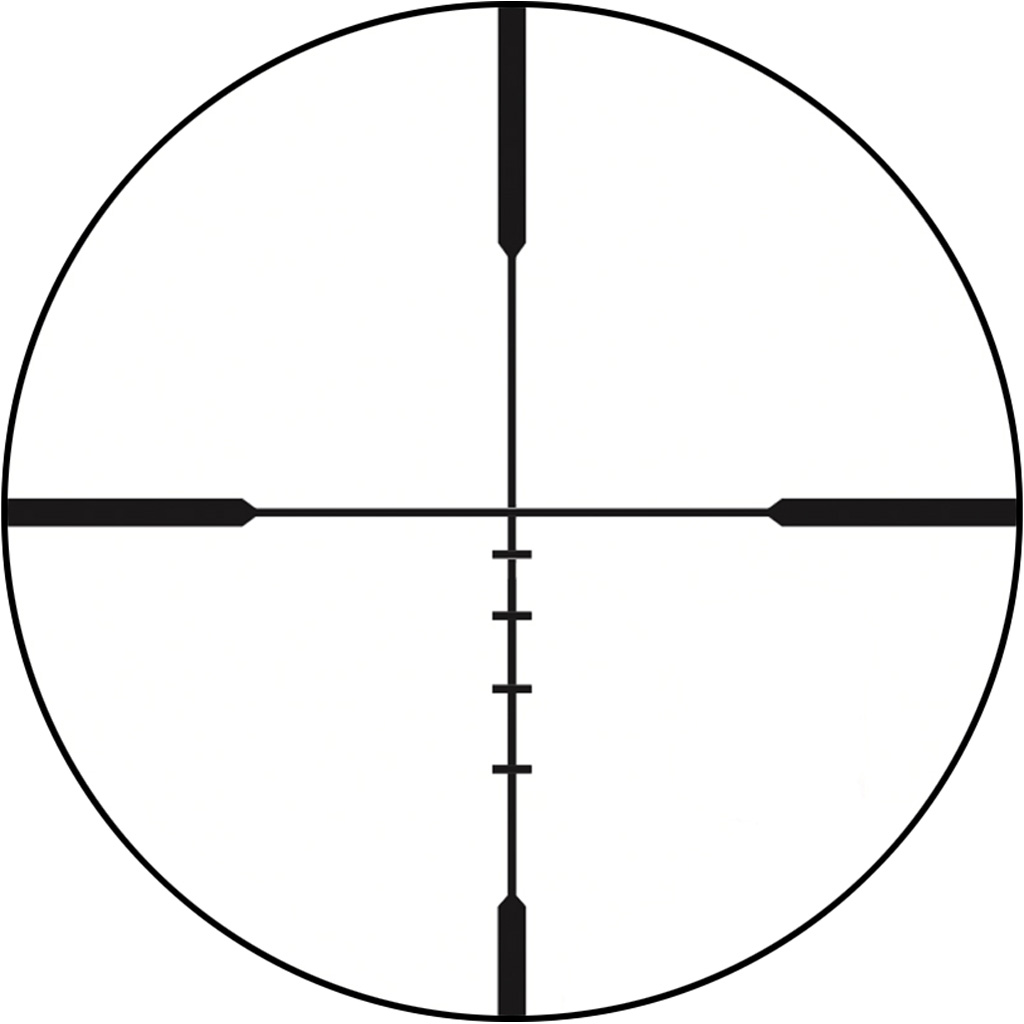 Buckmasters riflescopes feature a custom Buckmasters Bullet Drop Compensation (BDC) reticle that has holdover dots out to 500 yards.