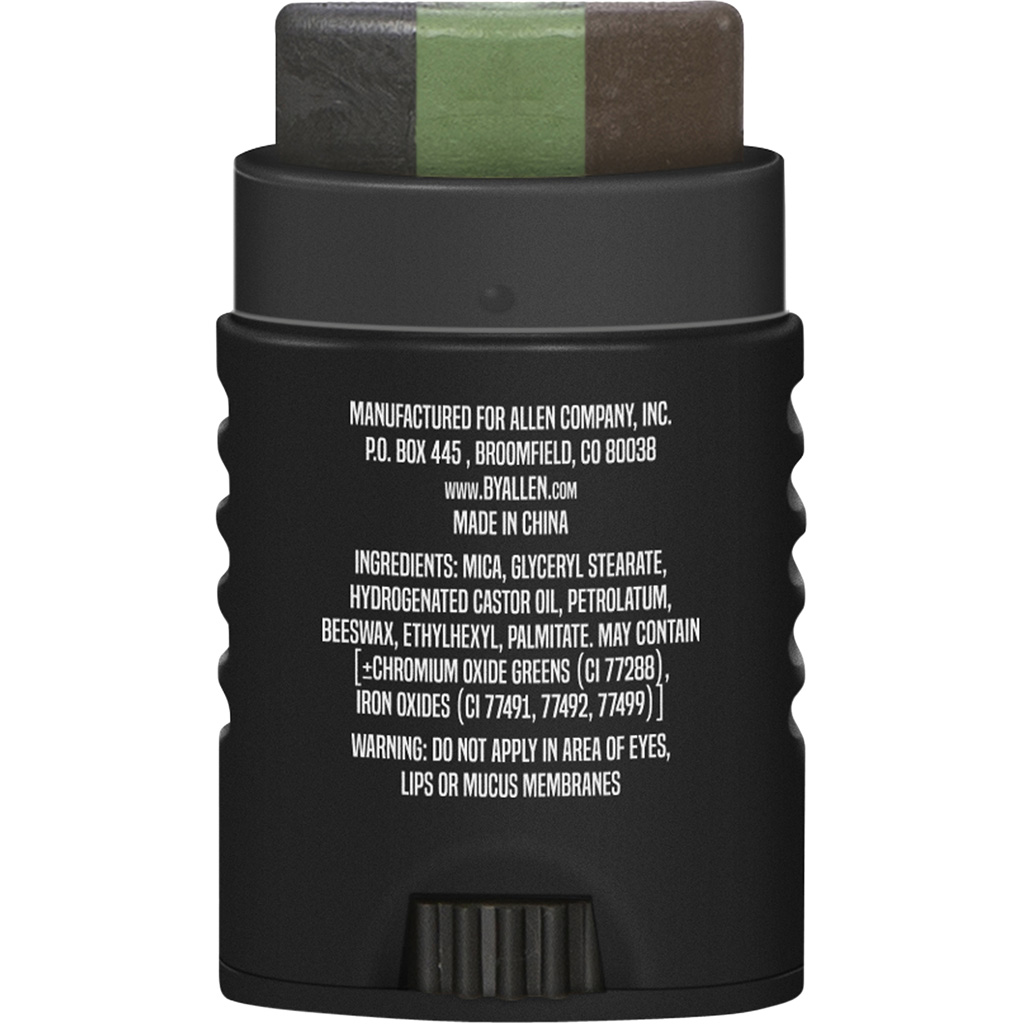 Camo face paint that is fast and easy to apply. Apply all colors at once. Washes off with soap and water.