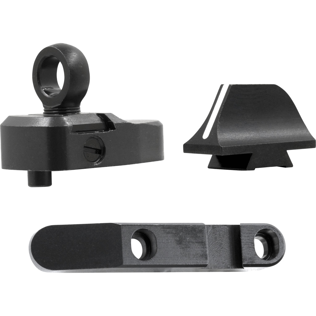 The XS Sights Ghost Ring Sight Set with White Stripe is designed for screw-on front sight Marlin 336, 1894, and 30AS rifles. It upgrades your firearm with rugged all-steel, fully adjustable backup iron sights, providing exceptional target acquisition and durability. The large ghost ring rear sight features two interchangeable apertures (.230" and .191") for varying light conditions. The blued steel front sight includes a painted white stripe for improved visibility and contrast. This set replaces the factory rear sight and mounts with a secure 20 inch-pound torque. Not compatible with new Ruger-made Marlins with 1.00" screw spacing, but works perfectly on CLASSIC 336/1894 models.